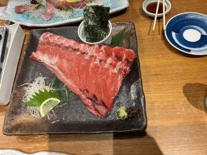 研修最終日の夜には、みんなで懇親会を開きました。そこで食べたマグロは、今まで食べたことがないくらい美味しかったです。美味しい料理を囲みながら、研修での思い出やこれからの抱負を語り合い、最高の思い出を作ることができました。